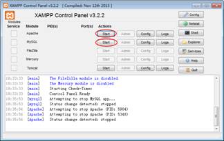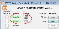 MySQL對應的兩個Start按鈕開啟服務。右下圖是服務啟動成功的狀態。