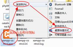 再在xampp目錄下的xampp-control.exe程序圖標上右擊鼠標 -- 發送到 -- 桌面快捷方式,在系統桌面