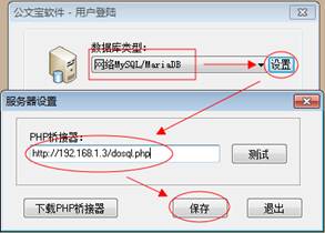 在公文寶收文管理系統登陸界面,選擇MySQL/MariaDB數據庫類型,點擊“設置”,輸入上面