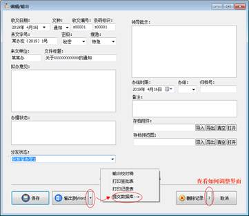 然后根據辦文崗位分工和公文分類情況,將登記好的公文再分派給指定的辦文員:雙擊主界面相應記錄