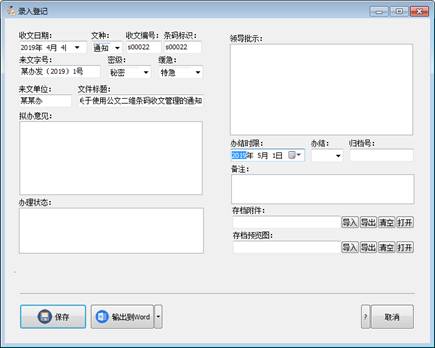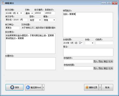 歸檔號:收文時可指定文件的存放位置并編號,如“F202室A1柜01盒01”等。