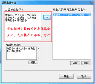選擇、編輯、設置發送單位,與主送單位類似)